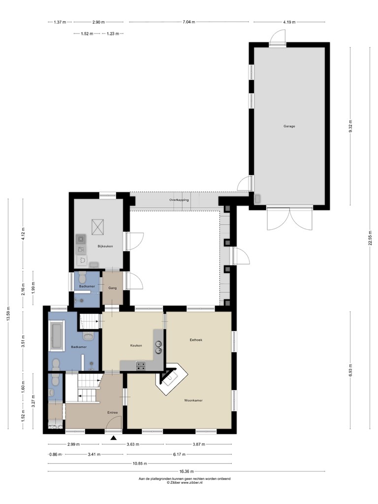 Garages. Beide uitgevoerd in spouw, verlichting en elektra. (meterkast in één garage voorzien van krachtstroom, rookmelder en brandblusser).