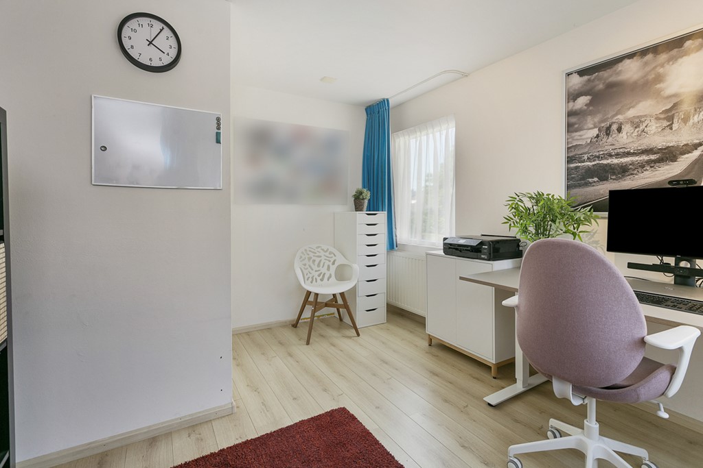 Tweede verdieping: De tweede verdieping is te bereiken middels een vaste trap en voorzien van comfortabele airconditioning (2020). Slaapkamer (IV) voorzien van een houtlook laminaatvloer, grote dakkapel en bergruimte onder kapschuinte. Slaapkamer (V) met voornoemde laminaatvloer, bergkasten met schuifdeuren, grote raampartij en deur naar sfeervolle loggia. Was/CV ruimte met HR-combiketel (2020), aansluitingen voor wasmachine en droger en volop bergruimte achter kapschuinte voorzien van schuifdeuren.